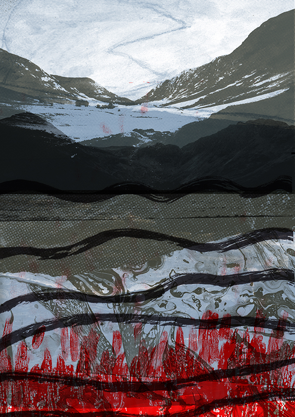 A series of layered risograph/mono prints inspired by the slow, generative forces of geology. Each piece mimics the accumulation, compression, and erosion of sediment, capturing the tension between time, pressure, and organic pattern. Using overlapping textures, muted tones, and the inherent unpredictability of risograph printing, the work explores how material history leaves its mark, both in landscape and in print.